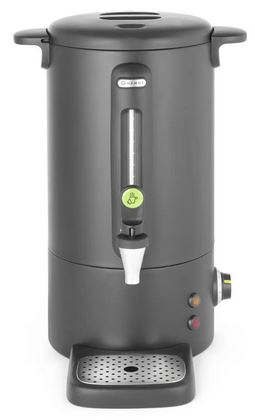 Kotel na horké nápoje HENDI UNIQ (design Robert Bronwasser) o objemu 9 litrů je profesionální zařízení určené pro ohřev a výdej horkých nápojů v gastro provozech. Varianta v černém provedení je součástí designové řady UNIQ, která je určená pro bufety, catering a hotelový provoz.