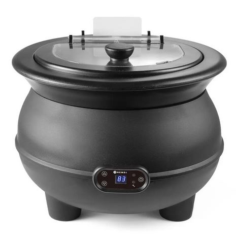 Kotlík na polévku HENDI 8 l je profesionální zařízení určené pro udržování teploty hotových pokrmů, zejména polévek, omáček nebo gulášů. Používá se v bufetech, jídelnách, cateringových službách a hotelových provozech, kde je potřeba stabilní výdej teplého jídla.