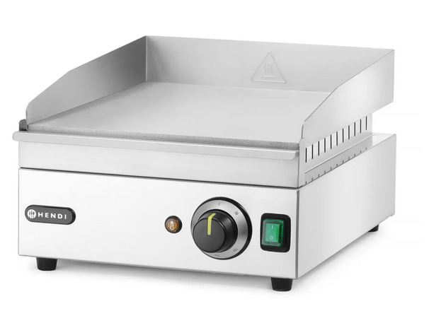 Grilovací deska HENDI Kitchen Line (2000 W) je kompaktní profesionální zařízení vhodné pro menší gastro provozy, bistra nebo stánky. Má zcela hladkou pracovní plochu, která je ideální pro přípravu vajec, palačinek, burgerů, masa nebo zeleniny.