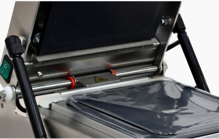Silikon pod nůž v zatavovacím stroji BOKAMA usnadňuje odříznutí fólie nožem při zatavování pokrmu do misek. Silikon lze snadno vyjmout a vyměnit.
